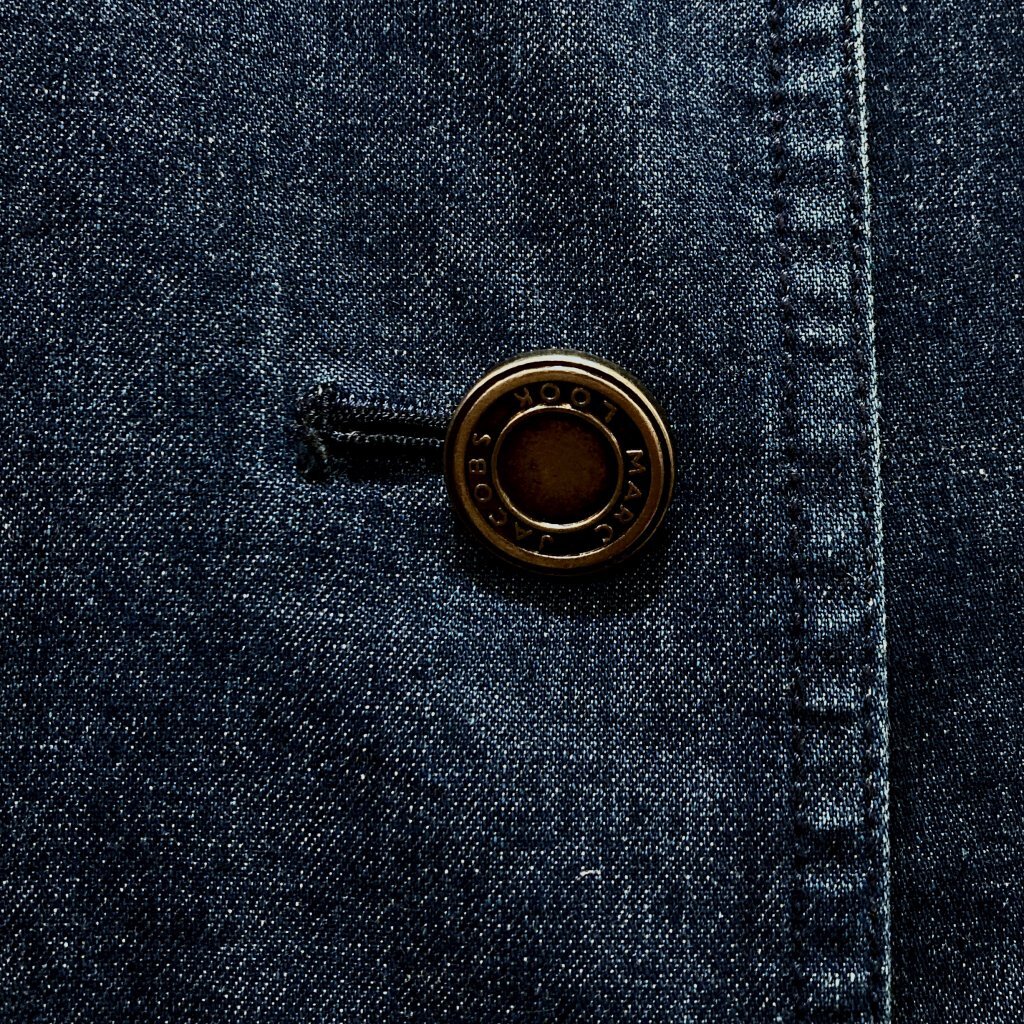 デニム素材のワークウエアテイストのチェスターコートです。
